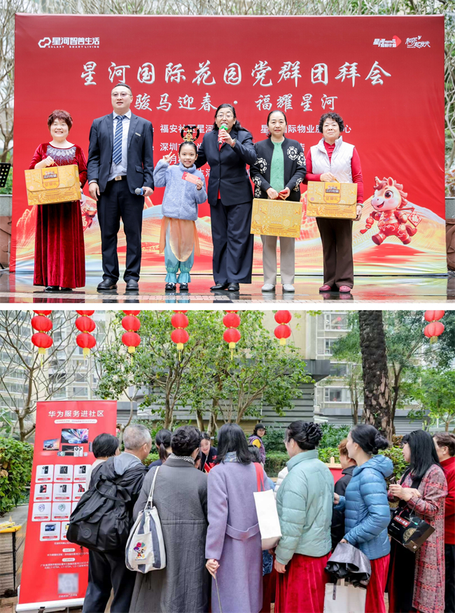 除了精彩的文艺演出,团拜会还设置了充满惊喜的新年抽奖环节,让到场的业主都能收获意外之喜。更值得一提的是,物业服务中心特别邀请了天虹、华为、电信、小米等知名品牌参与活动,为业主们提供了专属的便民服务与福利优惠,让业主们在欣赏节目、收获欢乐的同时,也能便捷享受高品质的生活服务,进一步构建起“便民、利民、惠民”的美好生活服务便利圈。
